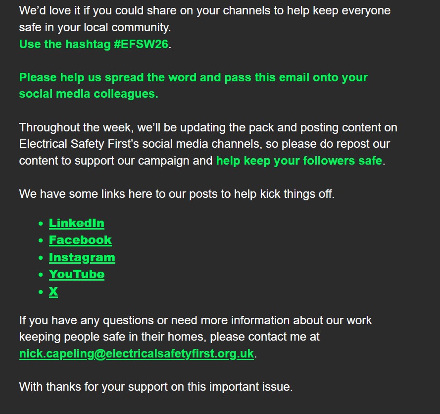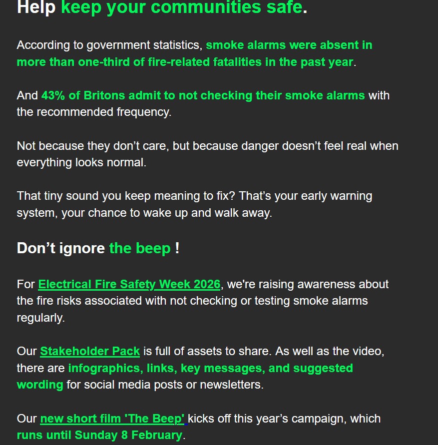 Station Commander for Community Fire Safety, Hannah Archdeacon, said: “We are reminding communities of the dangers of electrical items in properties if they are not used safely and with care and attention.