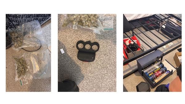 Both class B and class C drugs were seized from the address, as well as drugs paraphernalia and offensive weapons.