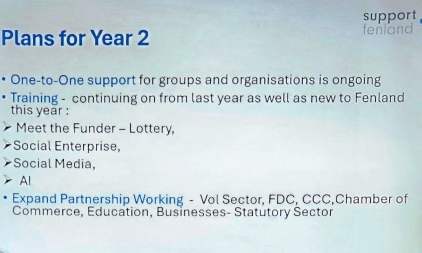 Celebrating one year today, since its formation/amalgamation of several Cambridgeshire support groups, around 70 voltuntary organisations were represented.