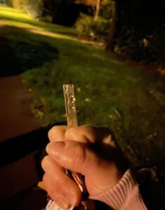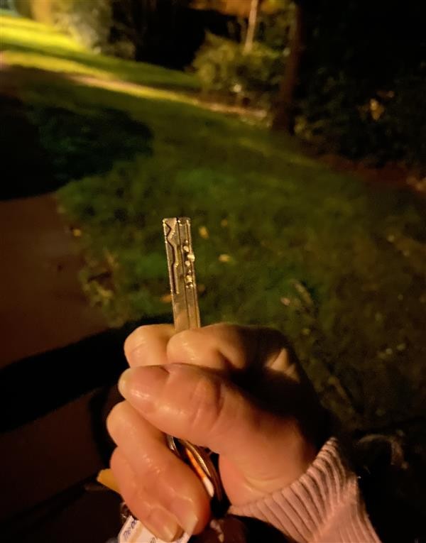 You get your keys out of your bag, grasp them like this and hold them in your right pocket. In your left pocket, you dial 999 on your phone just in case, ready to press.