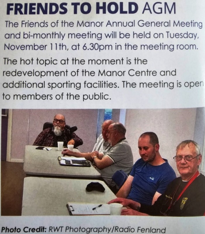 Fenland District Council will be putting on a display, and be available to answer questions on the ‘planned’ enhancement/upgrading’ of the Manor Leisure Centre.