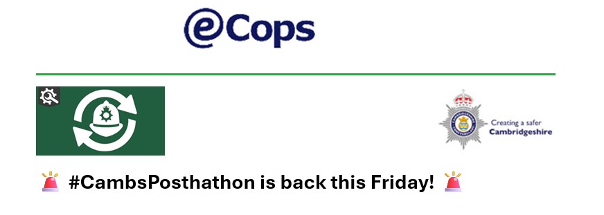 This Friday between 4pm – 10pm, Cambridgeshire Police will be taking to social media for our sixth annual Postathon, in celebration of International Control Room Week!
