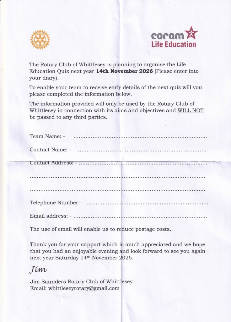 Rotary Quiz Next Year….