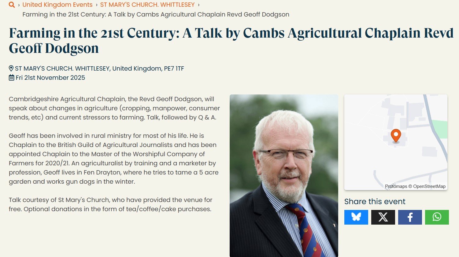 Farming in the 21st Century: A Talk by Cambs Agricultural Chaplain Revd Geoff Dodgson.