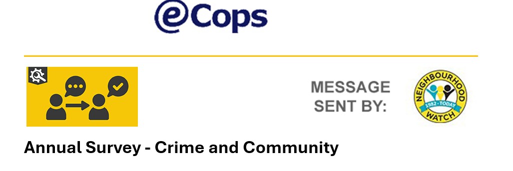 Today sees the launch of our annual survey looking at your experience of crime and your connection to your local community. The data from the survey goes into a report which we publish on the website, and use to help prioritise our work.