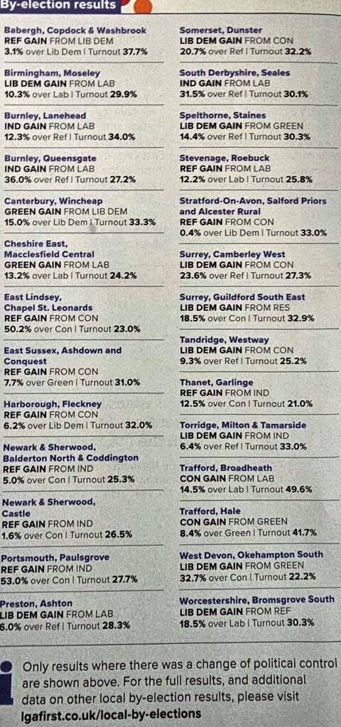 Looking at the recent results, Lib-Dems, Independents and Reform seem to be doing well.