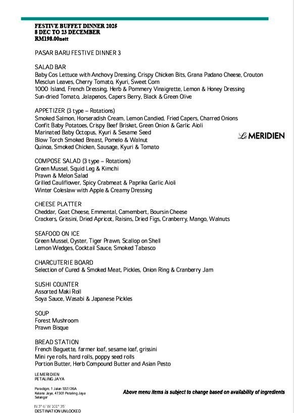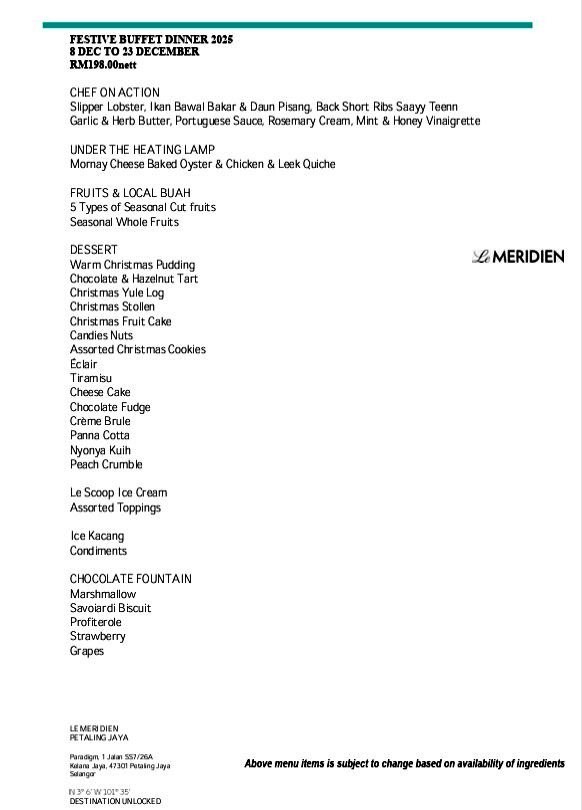 Knowing the manager ‘helps’, Christmas Dinner with 14 of my family in Malaysia/Singapore….fantastic buffet (Inc Turkey and trimmings), Lamb, Beef, Lobster, Crab and King Prawns on the menu…..and the wait for it…..the cost for us ‘seniors’ £20 per person.