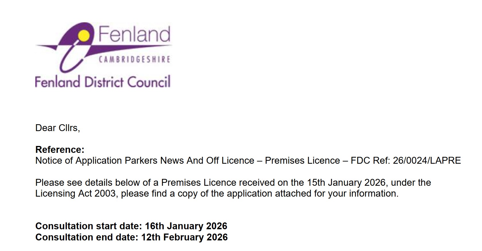 Parkers News – Application To Sell Alcohol
