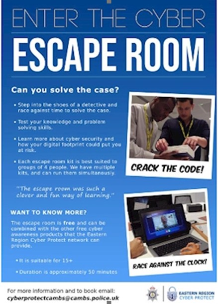 For more information, and to book the escape room challenge, email: CyberProtectCambs@cambs.police.uk