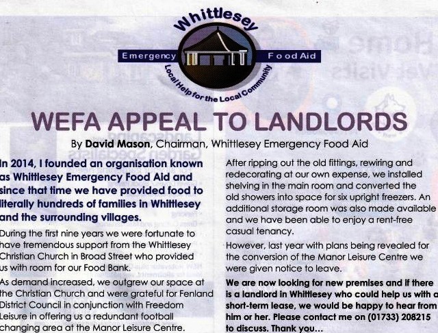 WEFA – [Whittlesey Emergency Food Aid], which was orginally set up by then
