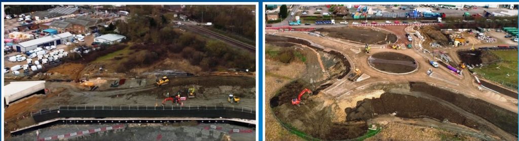 The first phase of the tie-in works at the western roundabout is completed (pictured right), with the next stage of activity to include tarmac to be placed up to the existing road.