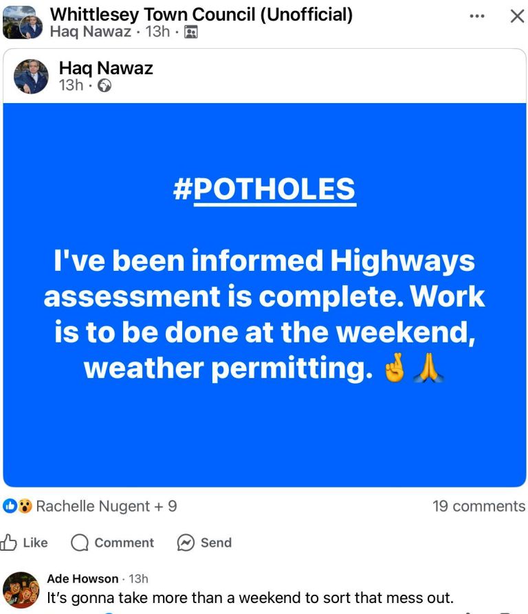 “Whittlesey, the town I grew up in,” he recently posted to social media.