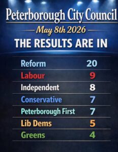 Conservative 3, Labour 4, Independent 3, Lib Dem 3, Peterborough First 3, Green 1