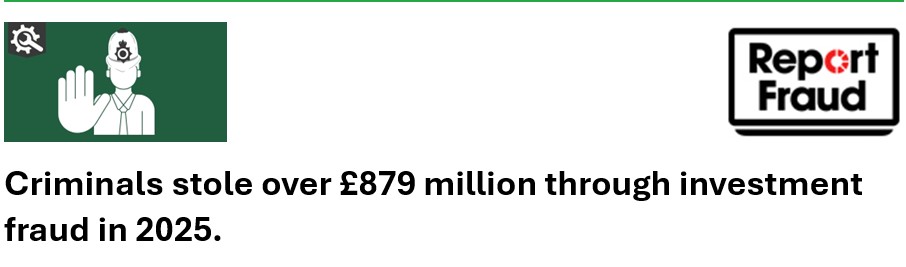 In 2025, 34,673 people reported investment fraud to Report Fraud, the national service that replaced Action Fraud in December 2025. This marks a 31 per cent rise on the previous year. The rise in reporting is not only linked to an increase in investment fraud, but also due to the point at which victims realise what has happened. Reports began climbing steadily from March and spiked in July and September when many people review their investments, move money into new products or check their returns ahead of the new financial year.